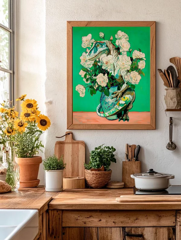 Van Gogh Maximalist Dinosaur Hidden Rose Botanical Floral Classical Painting Print